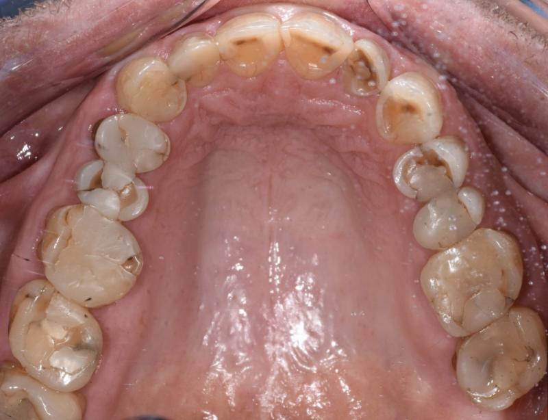 "En typisk mun efter 30 år med komposit. Patienten lider av food impaction och är trött på att få göra om fyllningar varje år." Bild: Johan Hagman