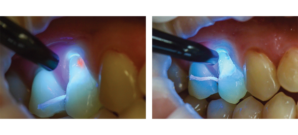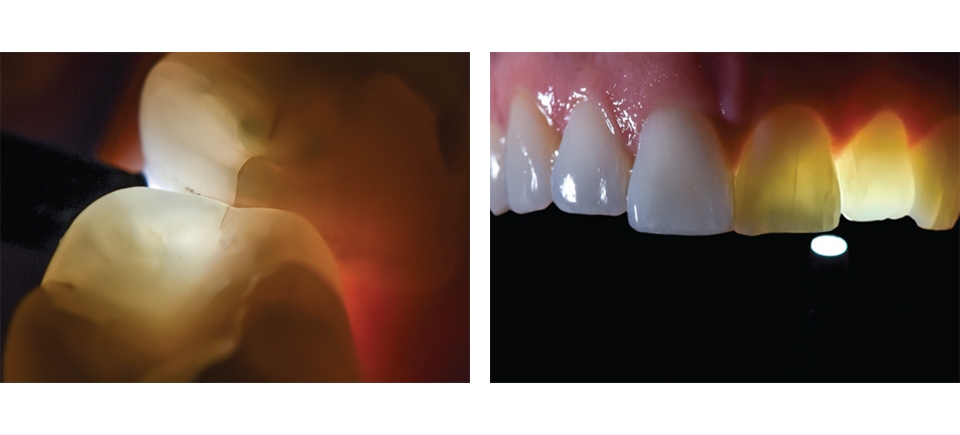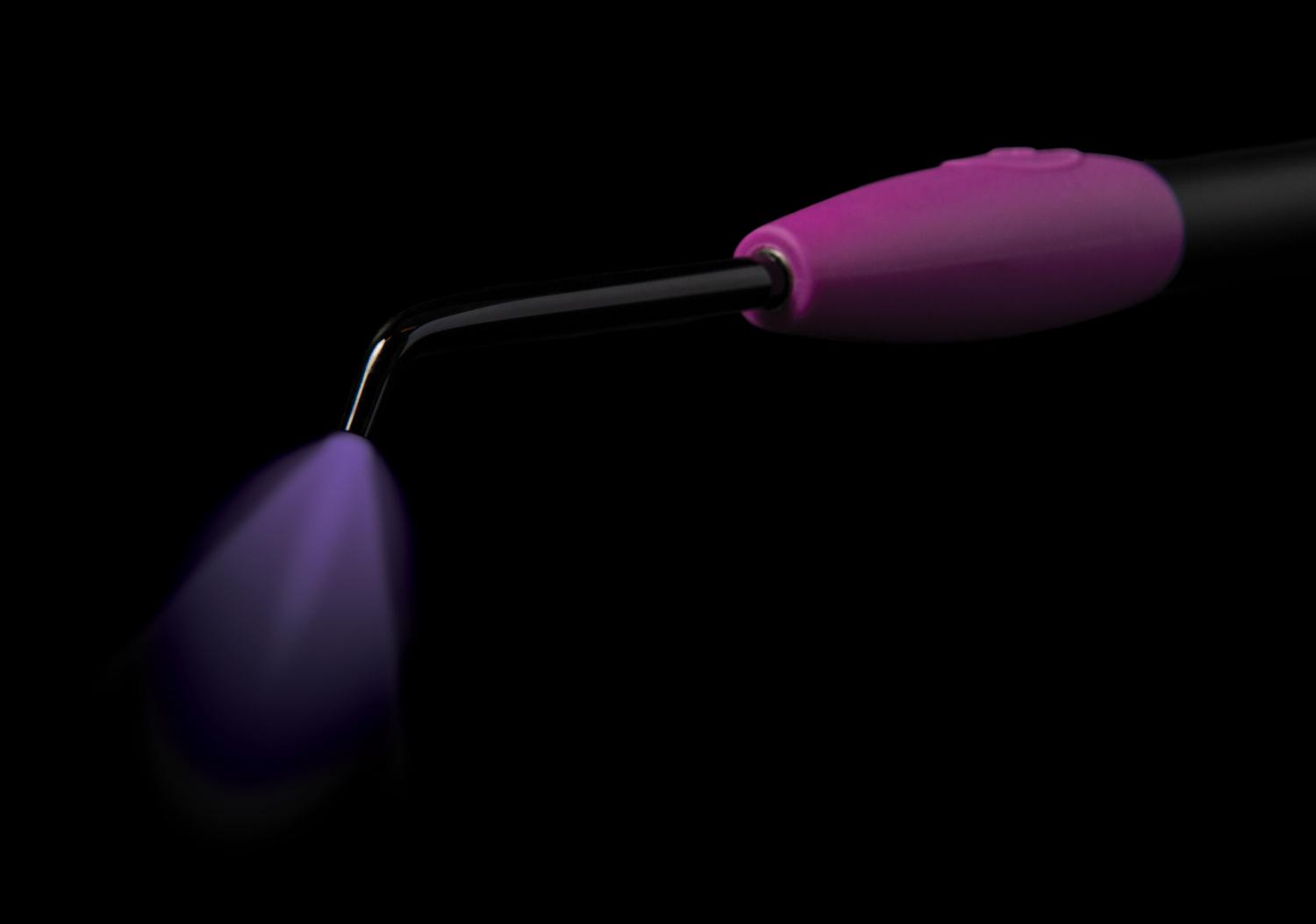 - Två ljuslägen: vit för visualisering av tandsprickor och violett för visualisering av komposit och andra dentala material, plack.