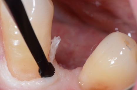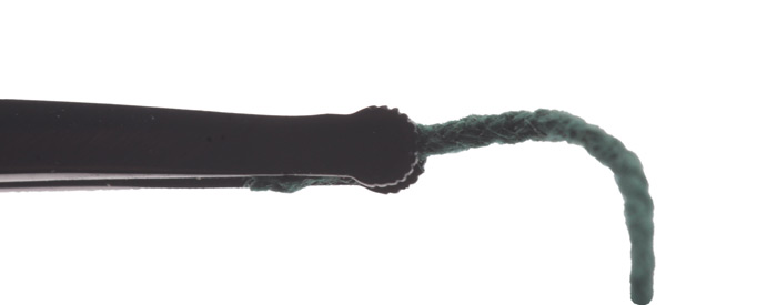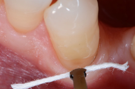 - Ta retraktionstråden med pincetten och placera den i fickan.