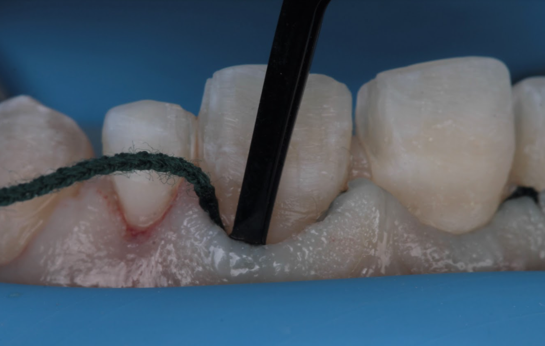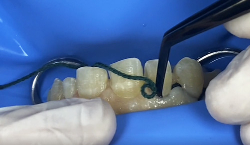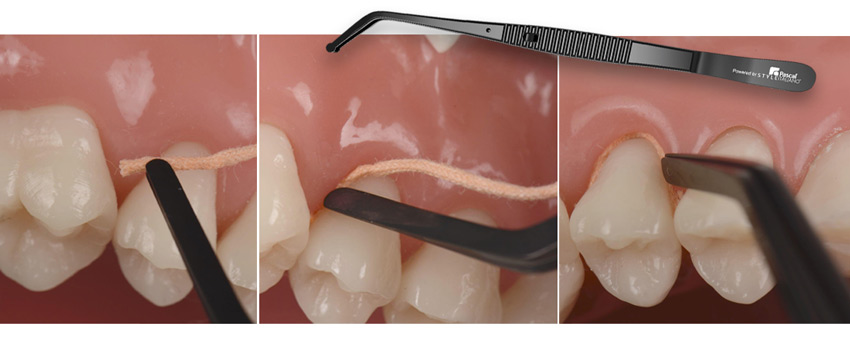 - Ta retraktionstråden med pincetten och placera den i fickan.