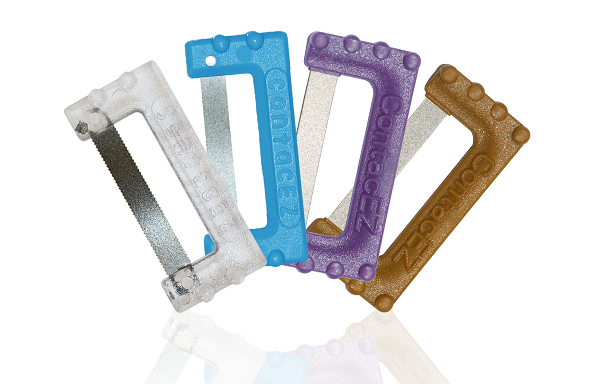 Handhållen stripsbygel för ortodontisk stripping. Oumbärligt hjälpmedel för IPR inför clear aligners som t ex Invisalign, Clear Correct med flera.
