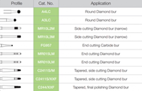 Innehåller 10 st specialtillverkade borrar med laserdjupsmarkeringar. För användning av handstycke för turbiner med hög hastighet.